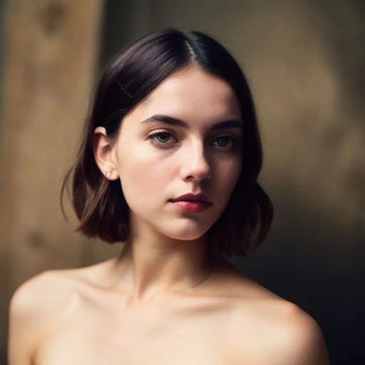 RAW photo, a close up portrait photo of 26 y.o woman in wastelander clothes, long haircut, pale skin, slim body, background is city ruins, (high detailed skin:1.2), 8k uhd, dslr, soft lighting, high quality, film grain, Fujifilm XT3